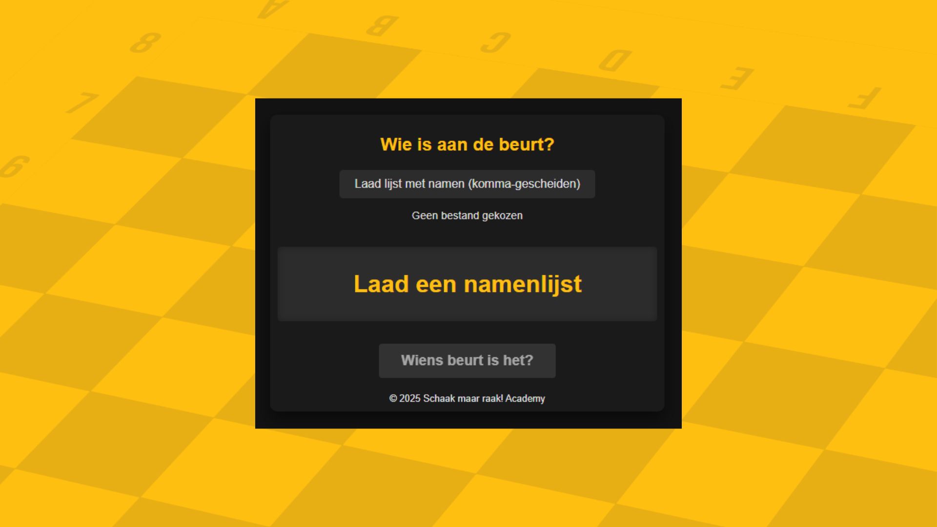 Maak een tekstbestand met daarin gescheiden door een komma de namen van leerlingen. Laad het in dit kleine tooltje en in willekeurige volgorde krijgen alle leerlingen een keer de beurt om een vraag te beantwoorden of een opdracht uit te voeren.